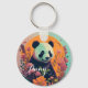 Panda on sunset with flowers, floral key ring