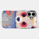The case features a stylised panda bear with large, expressive eyes and a gentle smile. The panda's fur is rendered in a textured blue hue, giving it a soft and cuddly appearance. Its ears are a warm orange, contrasting nicely with the blue