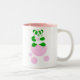 This super-cute mug has a picture of an adorable green panda bear, sipping a mug of tea with a little heart on it, while sitting on top of soft pink bubbles. The design has a nice and simple, vintage feel to it, and would be treasured by anyone who has a special place in their hearts for fuzzy panda bears, or a nice warm afternoon cup of tea.