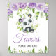 Panda Purple Floral Greenery Bamboo Favours Sign