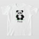 A shirt with a panda depicted in the grass with a bamboo stick.