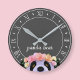 Panda Theme Rustic Black and White Round Clock