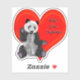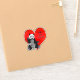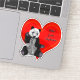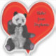 This customisable sticker is composed of 3 parts. A fluffy black and white panda waves to you while sitting in front of a large red heart. The text, "Hello! from Stephanie" can be changed to any text you would like to send your own message.
