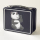 This is a standard metal lunchbox that appears to work just fine. We designed this box ourselves with an uploaded photo and custom text on the front and back. It looks absolutely beautiful except the front of the lunchbox is not centered like it shows in the photo. The print borders don't align with the inset flat part of the box where the preview photo online showed it perfectly centered in there. The back looks nice and centered though.