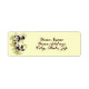These are return address label-size items. Appropriate size, nice contrast in colors, sticks well to paper. Love the picture. Took a little time to determine what parameters I could change on the label, but turned out adorable. Printing turned out as depicted when I typed my information. I was a bit disappointed in not being able to figure out how to get the nice script font that was shown in the sample. Colors and contrast good making it easy to read.
