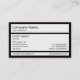 A business card template with a three panelled design on the front, with a header, body and footer layout for all the main details. On the reverse of the card there is a single main panel which can be used to add additional details and or images or left blank providing a useful note panel. This template can also be further customised, e.g. a logo could be added to the left in the header panel, the fonts and background colour can also be changed. Suitable for many types of business. A growing range of other variations of this template are also available.