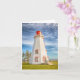 Panmure Island Lighthouse on coastal Prince Edward Island, Canada against blue skies on sunny day.
