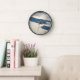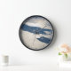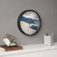 The size of the clock is dramatic and the abstract alcohol ink design is soothing and intricate at the same time. I chose the black frame that adds pop to the blue and gold design. The gold printing would be better in a slightly darker or larger font. I love it and I’m looking for just the right place in ny new apartment. I would recommend this clock for a personal gift or a present. I feel that the quality is excellent for the money! I’m a bit of a clock nut so I’m pretty particular about my purchases. The clock is larger in diameter than many if the clocks I have, so it stands out very well. I think a slightly darker printing color and a moderately larger size would best suit a professional decor or add more impact in a work place item.
