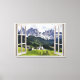 Panoramic mountain view from your home by window illusion Canvas Print.