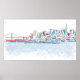 This design features a sketchy panoramatic view of the city Of San Francisco California.