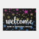 Colourful pansexual gay pride flag colours with faux glitter star shapes, pop against an elegant black background. Pink, yellow and blue colours welcome guests to your home, business or classroom. Bold white text reads "welcome". Easily update the teacher or family name or classroom title. Maybe there's enough room for a cute pansexual joke or phrase? It's yours to customise. Available in many other sparkly background colours and designs.