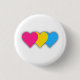 Classic Round Button with hearts design in colours of pansexuality; pink, yellow and blue stripes pride flag, rainbow love design