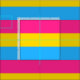 Design with pansexuality flag with rainbow stripes of pink, yellow and blue; pan pride design
