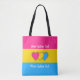 Shopping tote bag with the pansexuality pride flag with little hearts in the centre of the design. Pink, yellow, and blue flag of the pan pride movement; with an editable text field for your name or message