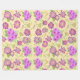 In this design we see bouquets of Pansies floral design in pink on a yellow background.