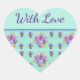 Pansy Flower Aqua Stripe floral Green With Love Heart Sticker