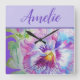 Pansy Purple Watercolor Pretty Floral Flower Square Wall Clock