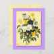 Beautiful cards with blooming purple, yellow and blue botanical violets and pansy flowers on a light faux parchment background with a violet border, the reverse is blank with a faux parchment background.