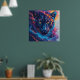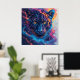 Digital artwork of a fierce panther illustrated with vibrant, colourful abstract patterns, conveying energy and wildness.