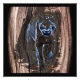 A black Panther painted on dar wood and giving the illusion to come out of the wood.