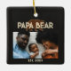 Papa Bear Father Year Established Photo Black Ceramic Ornament. Celebrate a special father figure with this "Papa Bear" photo ornament. This design features a rustic bear silhouette and bold vintage-style typography. The easy-to-use photo template allows you to showcase a favorite family memory, making it a thoughtful keepsake for Father's Day, first-time dads, or birthday gifts. Add the year you became a dad or grandpa, and add more years for more children. Photo can be adjusted in the Design Editor tool using "crop". Contact the designer with any customization questions.