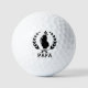Papa Father's Day Golf Bag Wreath Personalised Golf Balls features your custom text below a laurel wreath and a golf bag. Personalise by editing the text in the text boxes provided. Perfect for a dad for their birthday, Christmas, Father's Day and more. Designed by ©Evco Sports www.zazzle.com/store/evcosports
