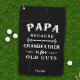 Grandfather is for old men, so he's Papa instead! This awesome quote design is perfect for Father's Day, birthdays, or to celebrate a new grandpa or grandpa to be who loves to golf. Design features the saying "Papa, because grandfather is for old guys" in white lettering on a black background. Personalise with his initials along the bottom for a custom touch.