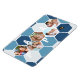 Honeycomb photo magnet, personalised with 5 of your favourite photos and printed with a 4 letter name, such as PAPA. The design features a honeycomb photo collage in shades of blue and white. For alternative colours and different length names, please browse my store in the Honeycomb Photo Collage collection.