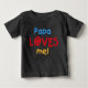 Papa Loves Me T-shirts, long sleeve tees, raglan T-shirts, bodysuits, football bodysuits, tutu bodysuits, organic bodysuits, sleeveless dresses, ruffle shirts, ruffle dresses, hats, dark T-shirts, sweatshirts, pullover hoodies, and more for kids, toddlers, and babies with red, blue, and gold text and heart design that reads Papa Loves Me!