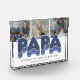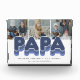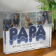 Modern family photo block featuring 3 square pictures for you to replace with your own, the title "PAPA", a personalised saying that reads "the man, the myth, the legend", and the grandkids names.