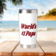Tumbler with World's #1 Papa in 3D burgundy text.