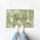 Papkolea Beach is one of the most colourful beaches in Hawaii, located on the south east point of the Big Island. The sand is green as a result of the mineral olivine from the volcanic cinder cone. We created this design from the inspiration of the colours of this beach and added palms that fan the breezes overhead. The colours are shades of palm greens and sandy naturals. Our floor mat says "Aloha" welcoming your guests to your beautiful beach house!