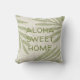 Papkolea Beach is one of the most colourful beaches in Hawaii, located on the south east point of the Big Island. The sand is green as a result of the mineral olivine from the volcanic cinder cone. We created this design from the inspiration of the colours of this beach and added palms that fan the breezes overhead. The colours are shades of palm greens and sandy naturals. This pillow is reversible and the front of the pillow says "Aloha Sweet Home".