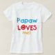 Papaw Loves Me T-shirts, cards, stickers, bodysuits bags, and more with colourful red, yellow, and blue text and heart design. These Papaw Loves me apparel and gift items will make papaw smile!