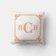 Papaya Orange Chinoiserie Greek Key Monogram Cushion