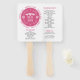 Papel Picado love birds hot pink wedding program hand fan featuring two love birds and a love heart with the word love, flowers and small dots in white on hot pink scalloped background. This design is totally customisable.
