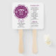 Papel Picado love birds purple wedding program hand fan featuring two love birds and a love heart with the word love, flowers and small dots in white on purple tones scalloped background. This design is totally customisable.