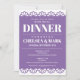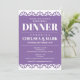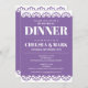 A papel picado style rehearsal dinner invitation with a festive purple background.