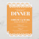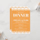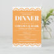A papel picado style rehearsal dinner invitation with a festive orange background.