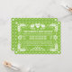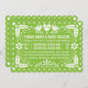 Lovely Papel picado style love birds green wedding Mexican fiesta invitation. This fun wedding invitation with scalloped edges features two white love birds and a love heart with the word love, flowers, leaves and dots. This Mexican folk art style floral wedding invite template is not really laser cut paper it is just a “printed on” image.