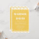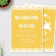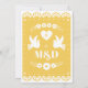 A beautiful papel picado style wedding invitation on a festive yellow background. The back features a dove design with the couple's initials. Perfect for a traditional or modern Mexican wedding.