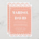 A beautiful papel picado style wedding invitation on a blush pink background. The back features a dove design with the couple's initials. Perfect for a traditional or modern Mexican wedding.