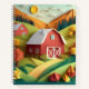 This item features trees, a house, a red barn, mountains, clouds with a paper craft 3D origami style look.