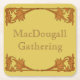 Brackets in each corner is an image in brown, showing three different sizes of leaves attached to a right angle. Personalise text in middle which defaults to "MacDougall Gathering"