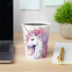 Cute watercolor unicorn with pink flowers, floral decorations.