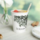 Tree with weeping branches/leaves. Black image of tree with slight greenish tint. Personalize with Name and Event Date to right and left.