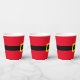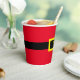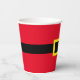 Red cup is circled by a black belt with a golden-yellow buckle. Initials SC in centre of buckle.