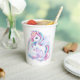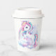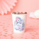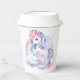 Paper Cups to a magical birthday party with an adorable unicorn with wings in the clouds on a rainbow background.