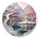 A lovely faux paper cutout landscape ceramic knob with mountains, pavilion, and trees.