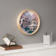A lovely faux paper cutout landscape wall clock with mountains, pavilion, and trees.